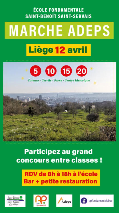 Quelques dates…•Lundi de Pâques - Férié - 6 avril •JOURNEE DE FORMATION PPil en école : jeudi 9 avril >> Lire la communication <<•Marche ADEPS : dimanche 12 avril•Vendredi 4 avril : Journée thème “Tous Ensemble !”•Fancy-Fair : samedi 30 mai